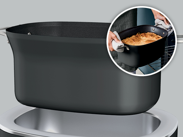 OVEN SAFE TO 500°F: Removable cooking pot is oven safe up to 500°F, so you can finish your meal in the oven for a crispy top.