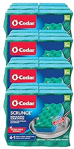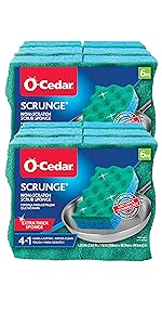 The powerful, yet gentle O-Cedar Scrunge Multi-Use Sponge uses the only patented durable non-scratch scrubbing surface recommended by Teflon quality tested nonstick coatings. Rated the best all-purpose cleaning sponge by Cooks Illustrated after extensive testing in America's Test Kitchen. This dual-sided, odor-resistant sponge has a rippled surface that breaks up and lifts away dirt then rinses clean to prevent stinky and smelly odors. This sponge is safe to use on both cookware and bakeware. After each use, rinse thoroughly and squeeze sponge dry after each use. To further clean sponge, place in the dishwasher. This multi-purpose sponge is designed to be safe on most household, hard surfaces. For delicate surfaces, test first on an inconspicuous area and allow to dry before general use. For best results, replace the sponge every 30-60 days! Built from durable materials, our sponge lasts 20% longer than regular scrubbing sponges. Traditional scrubbers trap and collect dirt which leaves them dirty and smelling gross. The Scrunge is S-shaped to fit perfectly in your hand for comfort and grip!