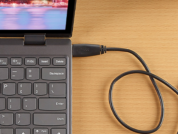 This USB drive offers easy plug-and-play functionality with the included 18-inch (45.72cm) USB Type-A cable.