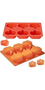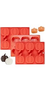 • PUMPKIN MOLD SET - You will get 2 pcs 6 cavity pumpkin shape molds. The mold size is 8.6x8.5x1 inch, and the individual pumpkin size is 2.5x2.6 inch, perfect for regular size oreo and make Thanksgiving chocolate covered oreo, or pumpkin chocolate bomb, muffin, cupcake, candy, or soap making.