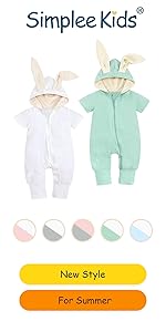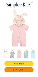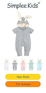 Simplee kids Animal Bunny Baby Easter Romper Long Ear Rabbit Hoodie Romper Jumpsuit with Zipper