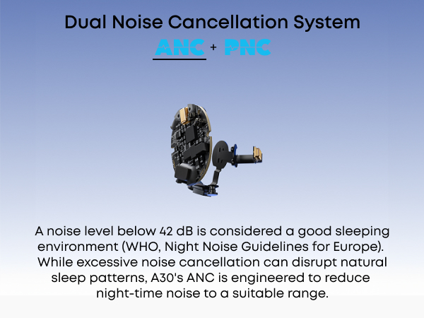 Block out Sleep Noise with ANC: Smart ANC with Ear Canal Adaptation Tech dynamically adjusts to your ears, providing deeper noise reduction for a tranquil night. Effectively block out snoring, pet sounds, appliance hum and outside traffic noise.