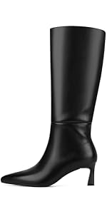 • Square-toe block heel boots feature side zipper closure with stretch gore closure, easy to put on and take off.