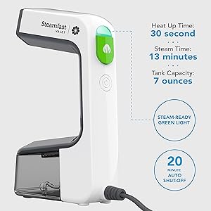 This compact and powerful steamer offers a multitude of features to ensure you always look your best. The green indicator light lets you know it's time to remove some wrinkles. With a quick 30-second heat-up time, this steamer gets you ready to tackle those stubborn wrinkles in a flash.