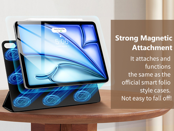 • Magnetically Attached: This ipad air 11 (M3) case installs instantly due to the strong magnets design. It attaches and functions the same as the Apple smart folio style cases