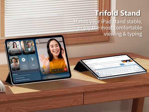 • Tri-fold Stand: This ipad air 11 case can be folded into a stable triangle stand, supporting different positions for typing, viewing and drawing