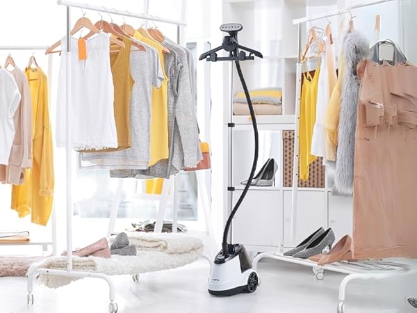 The extra wide telescopic pole provides extra support and lets you adjust the height of the steamer for easier storage.