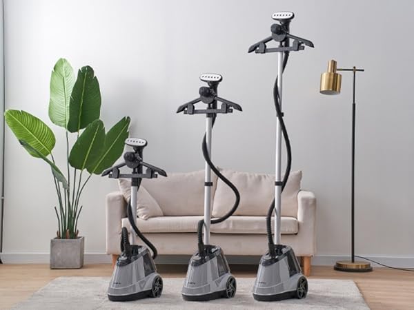 The adjustable telescopic pole allows you to adjust the steamer height from 36 in to 66 in
