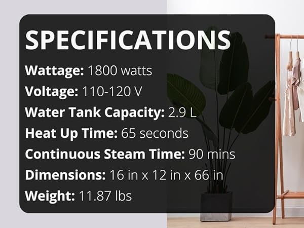 The True & Tidy Commercial Garment Steamer with Extra Large 2.9L (98 oz) water tank has an impressive 1800 watts of steam power suitable for both residential and commercial applications.
