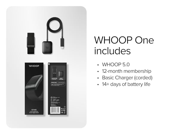 EVERYTHING YOU NEED IS INCLUDED: Your WHOOP purchase includes a 12-month WHOOP One membership, a WHOOP 5.0 device, a CoreKnit band, and a corded Basic Charger.
