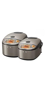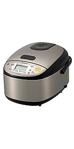 Zojirushi Micom 10 cup Rice Cooker and Warmer computerized fuzzy logic technology controls cooking temperature. Healthy brown rice setting. Double sensor and double-heater works in tandem to fine-tune cooking cycle for precise cooking. Automatic keep warm and extended keep warm feature. Easy-to-read LCD control panel with Clock and Timer functions. Delay timer (2 settings) provides freshly cooked rice at the programmed time. Black thick inner cooking pan and heating system provide even heating for better cooking results.
